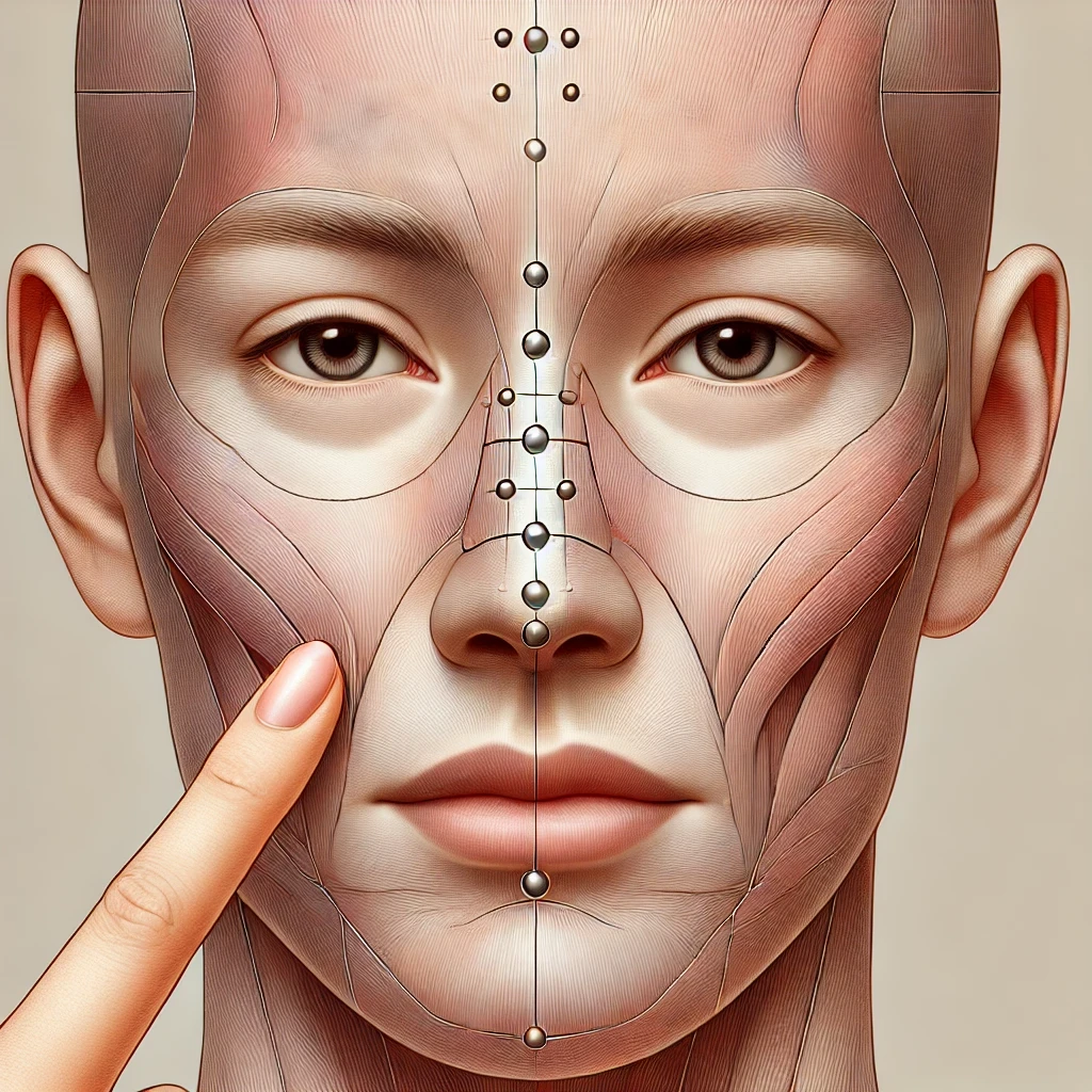 - 양쪽 콧방울 바로 옆, 팔자주름이 시작되는 움푹 들어간 곳을 찾습니다. 그곳이 바로 영향혈입니다.